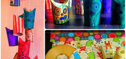 Para hacer esta sencilla manualidad sólo necesitamos papel de regalo, un poco de cola en barra y algún abalorio, por ejemplo botones, lazos, flores, etc…