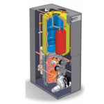 - El condensador, un intercambiador que permite devolver el calor al circuito de calefacción y donde el fluido frigorífico vuelve a pasar del estado gaseoso al estado líquido.