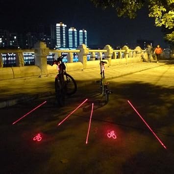 -Y por último, actualmente se están comercializando unos faros con proyecciones de láser que marcan la presencia de la bicicleta con figuras luminosas proyectadas en la calzada. Este sistema es muy interesante ya que permite dibujar un aviso en el asfalto a distancias de hasta 6 metros, por lo que cualquier vehículo o peatón  es alertado de tu presencia con suficiente antelación, evitando de esta manera accidentes imprevistos.