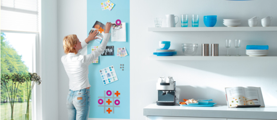 <li>Verwandle eine Wand in eine <strong>große Magnettafel</strong> für Fotos, Zeichnungen oder Erinnerungen.</li>