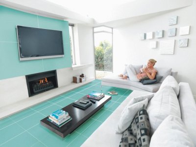 En las fotografías puedes ver un ejemplo de cómo usar el vidrio en un sala o en una cocina. En ambos caso se ha decidido combinarlo con otro tipo de pavimento, lo que potencia la imagen y el carácter de la parte de suelo pavimentada con baldosas de vidrio.
