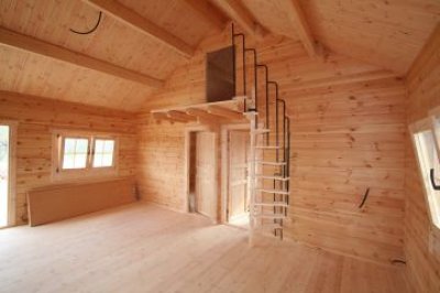 Casa prefabricada de madera de 72metros cuadrados, 2 dormitorios bajo, baño, cocina-salón, arriba una habitación. son 54 +18 m2 arriba.