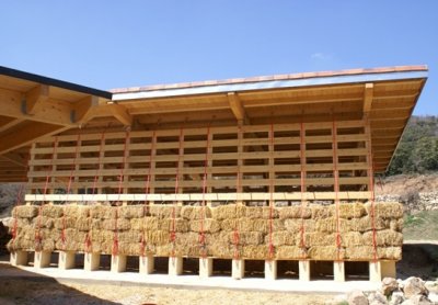 Las balas de paja empleadas en la construcción hacen la función de los grandes bloques de cemento, y se colocan aparejadas en hiladas que van configurado los distintos muros y cerramientos.