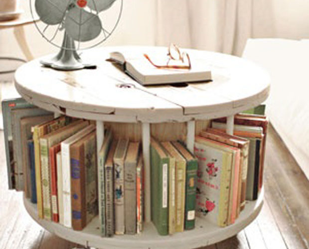 La forma de hacerla es muy sencilla y sólo necesitarás una bobina de cable de cobre (obtenida legalmente), un bote de pintura, unos tablones para hacer compartimentos para guardar libros y revistas y unas ruedas que te permitan trasladar la mesa de un lugar a otro.
