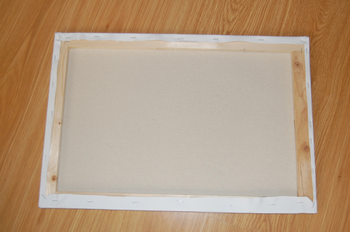 Ya tenemos colocado el lienzo en el bastidor. Ahora hay que doblar las esquinas como si estuvieras envolviendo un regalo (lo cierto es que los pliegues de las esquinas son la parte más difícil de lograr, pero con la práctica te resultará más fácil. Si te sobra tela, puedes cortarla con unas tijeras). Una vez sujetas las esquinas, ya sólo queda grapar lo que queda de lienzo. No olvides estirarlo para asegurar que el lienzo esta suficientemente tenso.