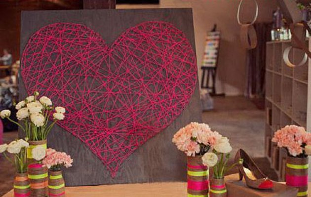En el ejemplo que te mostramos puedes ver un sencillo corazón hecho a partir de hilos, bastante fácil y asequible a todos, también a los menos hábiles.