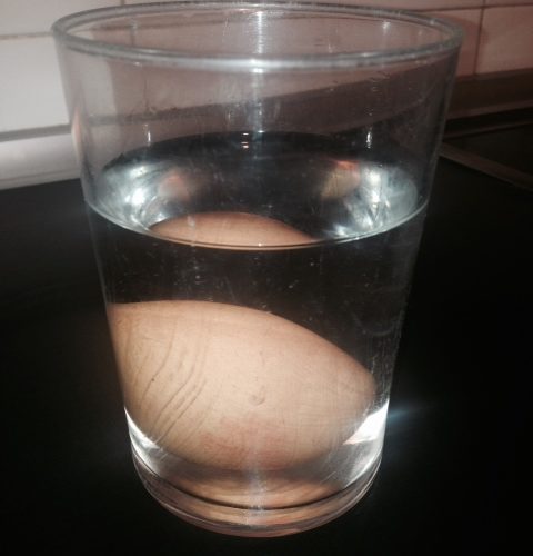 Experimentos de física para niños. El huevo que flota. Lo primero que haremos será pedirle al niño que ponga el huevo en un vaso de agua que previamente habremos llenado hasta arriba, observaremos como el huevo se hunde hasta el fondo.