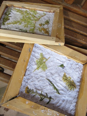 7-Para darle textura y crear papeles reciclados diferentes podemos utilizar hojas secas, ramas, pedazos de hilos de colores