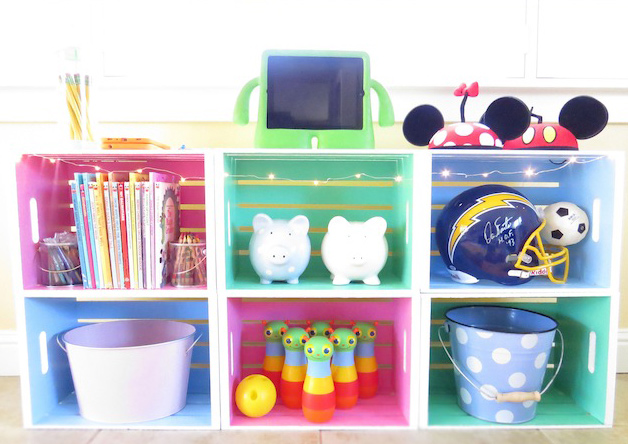 Cómo hacer una estantería para juguetes con cajas de madera.