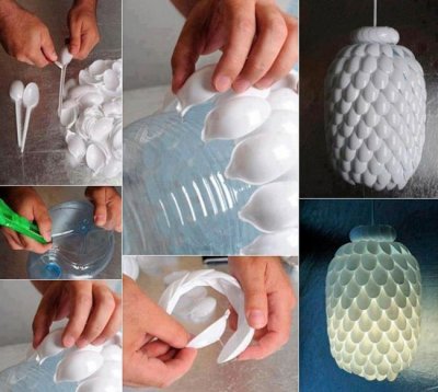 Cómo realizar una lámpara con cucharas de plástico desechables.