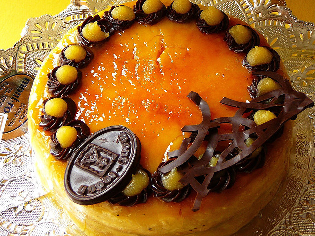 -Una vez listo el bizcocho, lo cortaremos a lo largo con cuidado, haciendo que queden dos bizcochos redondos más delgados. Encima del bizcocho inferior pondremos un poco de mermelada. Cubriremos con la yema la parte superior del bizcocho y los laterales.