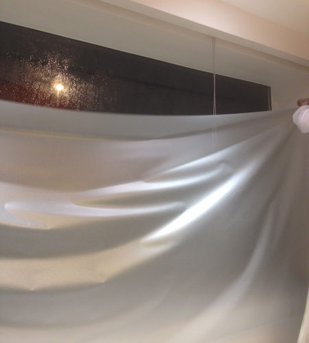 - 4-Lo primero que haremos será replantear una parte del vinilo para ir poco a poco pegándola al cristal. Lo más fácil es colocar primero el lado corto del cristal.
