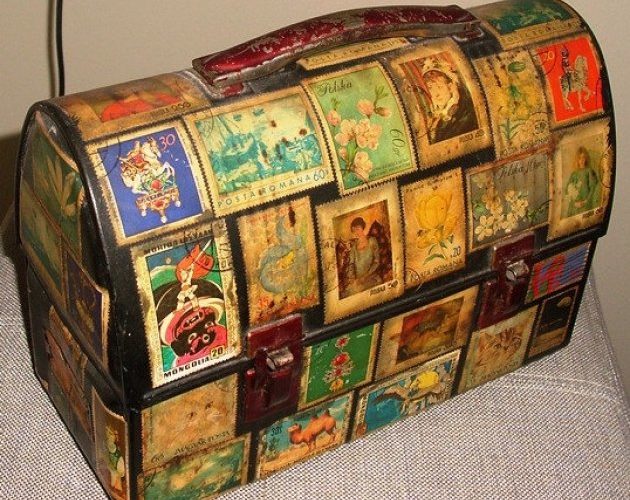 Decoración con viejos sellos postales. Algunos hemos olvidado ya lo que son los sellos postales, pero desde que se inició el correo postal, los sellos han sido siempre una forma de conservar un recuerdo de algún viaje o vivencia.