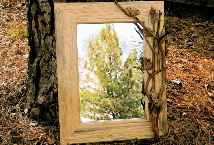 Una vez hayamos colocado nuestro espejo en el marco y lo hayamos sujetado bien ya sólo queda dar nuestro toque personal, en la imagen de muestra que te presentamos, el autor ha optado por una simple rama de árbol (no natural), esto te puede dar alguna idea, por ejemplo si encuentras una bonita rama en el bosque, tan sólo tendrás que barnizarla o darle algún tinte para que adquiera un tono que te guste y ya tendrás tu espejo personalizado.