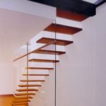 Se trata de una escalera de caracol con distanciadores y peldaños de haya laminada de gran dureza y resistencia, barandilla metálica y pasamanos de haya. Una escalera clásica, con pasamanos de madera, pero esbelta, de líneas claras, sin la rotundidad y pesadez de las escaleras completamente en madera, la barandilla metálica proporciona el toque de ligereza justo y necesario.