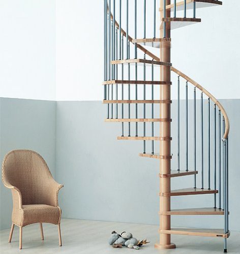 Escaleras de caracol de madera de haya. Las escaleras de caracol solucionan de manera muy eficiente la escasez de espacio dentro de las viviendas. Probablemente son las soluciones que consiguen en la menor superficie salvar la mayor altura posible. Las escaleras de caracol en su contra tienen que resultan relativamente poco cómodas y, en algunas ocasiones, de difícil acceso.