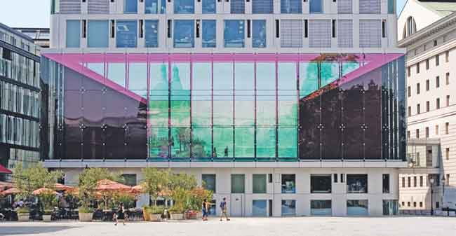 La opera estatal de Baviera nos ofrece una imagen espectacular gracias a su fachada de vidrio que actua reflejando la arquitectura del entorno. Además, gracias a los vidrios utilizados conseguimos efectos de color muy interesantes.