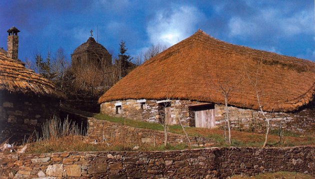 Hacía el este León y hacia el Oeste Galicia. En lo más alto de lo que hoy es una reserva natural, O Cebreiro mantiene intacta sus construcciones y sus costumbres. En esta ancestral aldea encontrarás la típica construcción vernácula, testigo mudo del paso de los siglos: la Palloza. Esta construcción de planta circular o cuadrada y cubierta de paja de centeno, es la herencia celta de los antiguos castros de aquellos primeros habitantes  de estas tierras montañosas.