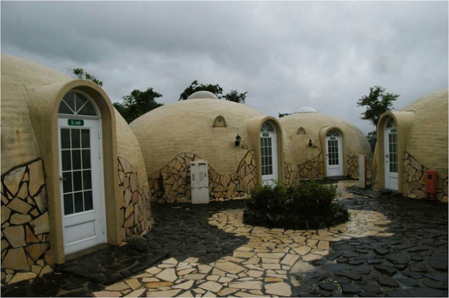 -Los iglúes y las construcciones con forma de cúpula. Una forma de beneficiarse de las formas esféricas es a partir de las cúpulas. Una cúpula es media esfera y por lo tanto, sin llegar a ser 100% eficientes si resultan más eficientes a todos los niveles que su equivalente en una forma prismática.