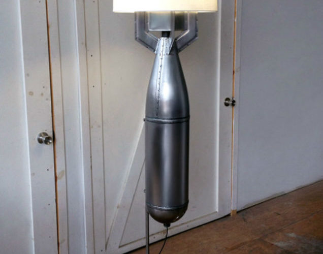 En todo caso, qué te parece esta original lámpara hecha a partir de una bomba. Muchos ejércitos no saben como deshacerse de estos viejos artilugios, así que algunos diseñadores han decidido darles otro uso.