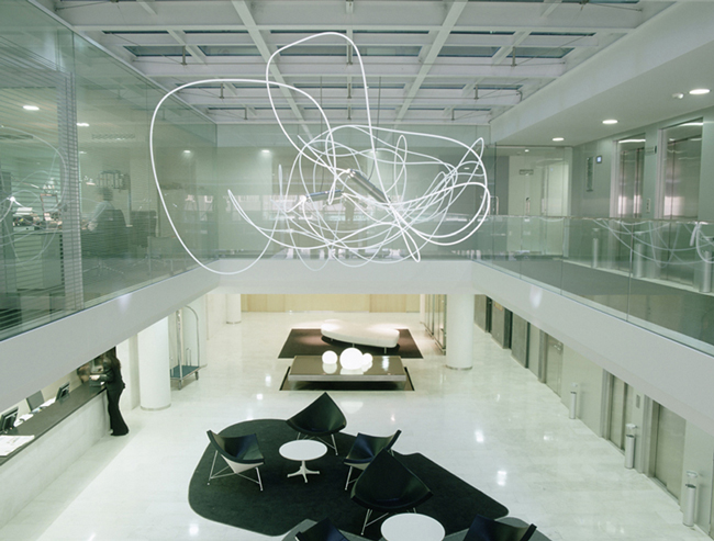 Y este es el caso de la luminaria HLF, una luminaria diseñada por Héctor Fernández y que está pensada para decorar grandes espacios interiores. Esta luminaria funciona a partir de un generador de aluminio que puede estar satinado o en blanco y un difusor flexible de fibra óptica que es el que le otorga su diseño tan original.