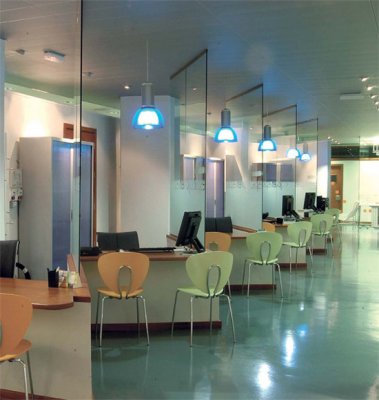 índice de protección IP40. Bajo pedido se puede suministrar con IP65. Versiones para aplicaciones industriales en capitulo, «Luminarias para grandes alturas».