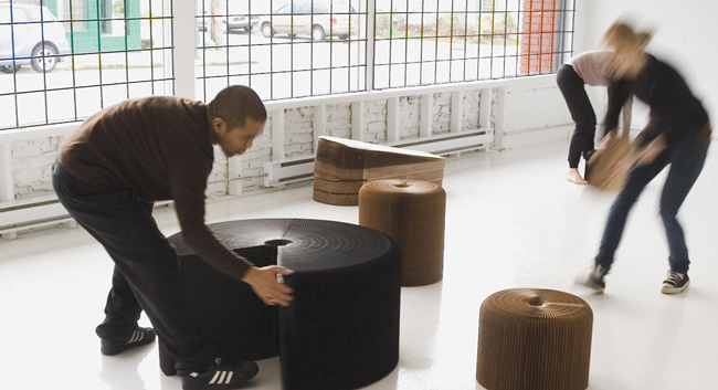 Utilizando el alma de cartón con estructura del panel de abeja se pueden crear diseños muy interesantes y resistentes, desde paneles divisorios hasta sillas o sillones.