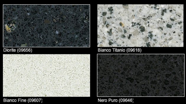 La piedra artificial de granito es muy demandada entre los diseñadores por su economía y su terminación parecida a la piedra natural. La piedra artificial de granito está producida mediante una mezcla de áridos de granito natural y resinas de poliéster que se refuerza con una malla de fibra de vidrio y se funde en el horno a 240 °C. Se obtienen así piezas de 3 m de longitud por 60 cm de anchura que pueden recortarse en cualquier forma, y que se caracterizan por un espesor estándar de sólo 6,5 mm, 4,5 mm en la producción calibrada, diseñada para aplicarse mediante cola de contacto sobre madera o metal tras haber sido rebajadas cerca de 1 mm para recuperar el aspecto de la piedra original, que ocupa el 92,7% de la superficie vista, frente a sólo un 7,3% de resina.