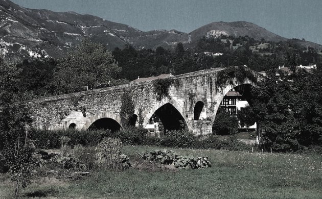 Pueblos de España. Cangas de Onís. Hay una imagen de Cangas de Onís que todo el mundo reconoce, su puente, que es gótico y fue construido en el siglo XIII con siete arcos. Porque Cangas de Onís, un pueblo de montaña a la sombra de los picos de Europa, fue la primera corte de los reyes asturianos.
