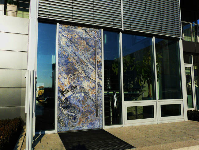 Tueren-art es una de estas empresa que fabrica puertas con finas chapas de piedra de 2 a 7mm de espesor como revestimiento de bastidores de aluminio.