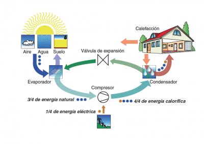La bomba de calor de ciclo reversible. Este tipo de bombas de calor sirve para producir tanto frío como calor, mediante una válvula de cuatro vías, denominada válvula de inversión del ciclo, se pasa el ciclo del modo calefacción al modo refrigeración. Lo que se hace es convertir el compresor en evaporador y el evaporador en compresor.
