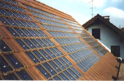La teja fotovoltaica permite que las cubiertas de los edificios residenciales o comerciales se conviertan en fuentes de energía eléctrica. La teja fotovoltaica imita la textura granular de las tejas convencionales circundantes. La teja se coloca sobre láminas de fieltro.  Por debajo de cada teja transcurren las diferentes conexiones y cableados, encargados de conducir la energía. Cada teja producirá un promedio de 1.4kWh por día.