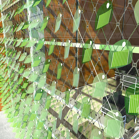 Se trata de paneles fotovoltaicos flexibles dispuestos sobre la superficie de las fachadas como si de hojas se tratase, y al igual que estas, se mueven al compás del viento, produciendo energía eléctrica.