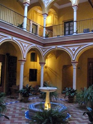 Supongamos que tenemos un patio interior, en un clima muy caluroso, y que la mayor parte del día está en sombra, la temperatura del aire en el interior de este patio, durante el día, supongamos que está a 25 °C, si el suelo es de un material como la madera, no notaremos gran diferencia entre la temperatura del aire y la del propio suelo cuando andemos descalzos por él. Sin embargo, si el suelo es de piedra, y durante la noche la temperatura ha bajado a 18°, cuando el sol caliente el aire hasta 25°, el suelo, que durante la noche ha bajado su temperatura hasta 18°, durante el día, hasta que absorba todo el calor, da una sensación de frescor ya que se encuentra a 18°, sensación que podremos aumentar, si refrescamos el suelo con agua, procuramos un entorno sombreado y a la vez humedecemos el aire con alguna fuente. Esta es la razón por la que los patios de zonas de veranos calurosos, suelen tener soldados de piedra, fuentes y vegetación.