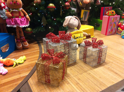 Una caja para regalos hecha con malla metálica a prueba de impacientes.