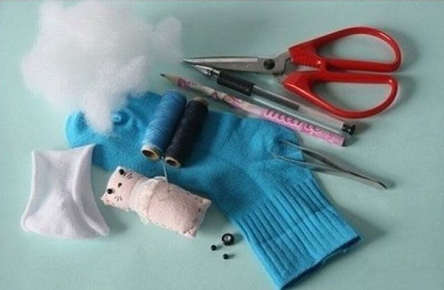 Si sigues las fotografías que adjuntamos puedes hacerte una idea aproximada de cual es el proceso para hacer el osito de peluche con el calcetín, en todo caso te recomendamos que sigas las instrucciones que enumeramos a continuación: