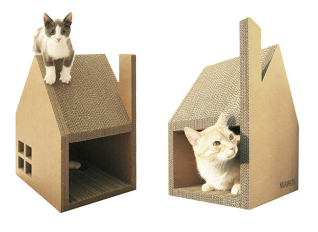 ¿Qué te parece si le construyes un refugio de cartón que seguro no tardará en descubrirlo y en acomodase dentro de él para echarse largas siestas?. Krabhuis, una casa de cartón para gatos ha sido diseñada por tres arquitectos holandeses y está realizada con cartón, concretamente con 48 planchas que unidas consiguen formar esta pequeña casa.