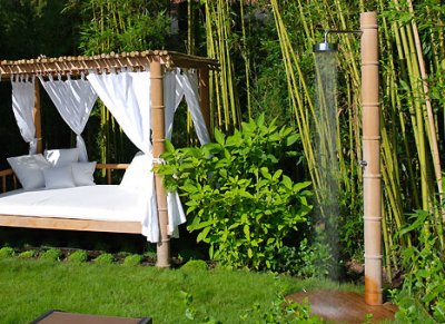 Una ducha en un tronco de bambú