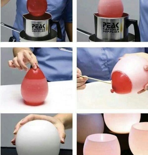 3-Sumerigiremos lentamente el globo dentro del recipiente con cera. Debes tener cuidado de no introducirlo completamente para no quemarte y evitar que explote.