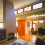 El tablero ligero de la mesa se va estrechando hacia los bordes pasando de 68mm a 10mm. lo que aporta una imagen liviana a todo el conjunto. En la parte más gruesa es donde se monta una estructura interior de panel ligero de celulosa con forma de panel de abeja.