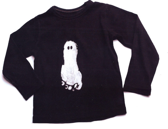 Una terrorífica camiseta para Halloween. Pregúntale a tu madre si puedes utilizar una vieja camiseta negra para pintarla y disfrazarte la noche de Halloween.