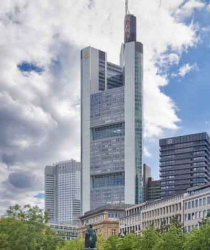 El edificio del Commerzbank es el resultado de un concurso en cuyas bases se pedía el ahorro energético y la calidad medioambiental, este edificio incorpora un sistema de jardines colgantes desarrollados en toda la sección vertical del edificio. Cada jardín ocupa cuatro plantas y va rotando aprovechando la forma triangular de la planta. El aire se introduce a través de ventanales automáticos y llega a las distintas zonas del edificio a través de ventanas, que a su vez tiene sistemas automáticos cuando se detecta que las condiciones no son las adecuadas y es necesario emplear los sistemas de acondicionamiento artificial.