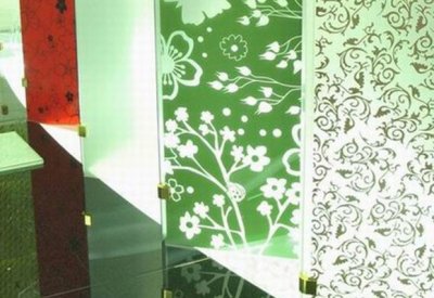 Vidrio estampado: Es un vidrio plano cuyas superficies muestran un patrón regular. El método más común para la producción del vidrio estampado es pasar el vidrio todavia caliente (por lo general después de que sale del horno) entre rodillos, cuyas superficies contienen el relieve negativo del modelo deseado. El vidrio estampado se utiliza sobre todo en la decoración y arquitectura interior. Hoy en día, se usa típicamente por razones funcionales, donde se desea una transparencia a la luz a la vez que una imagen diferente.