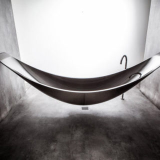 Esta bañera parece más bien una hamaca colgada de las paredes.