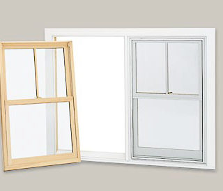 Las ventanas con revestimiento de fibra de vidrio y marco de madera.